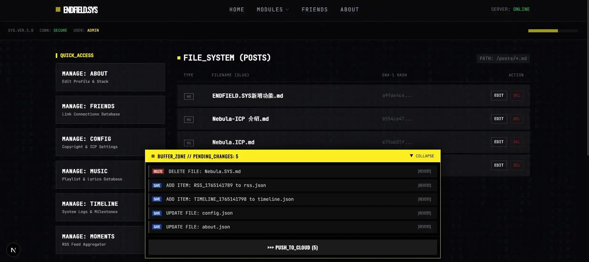 由于网站是没有数据库的,是直接读取仓库下的内容,每次在后台提交新内容就会触发重新部署,等个30秒左右,太浪费时间了,就想着能不能暂存起来,然后再一并提交上传,然后花了点时间优化了这个玩意!